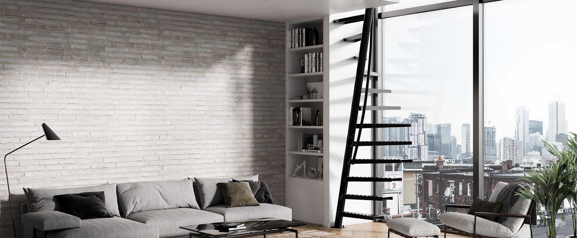 De stijlvolle ruimtebesparende 1m2™ trap is speciaal ontworpen voor kleine ruimtes door ingenieurs en metaalexperts bij EeStairs, een van ‘s werelds toonaangevende specialisten op het gebied van trappen.