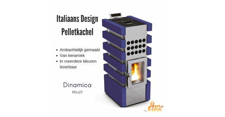 Art of Fire Italiaanse design pelletkachel Dinamica Pellet blauw keramiek