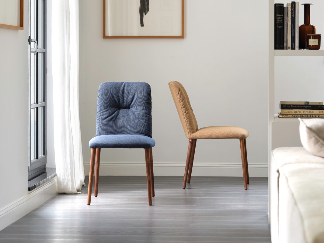 Zijn zeer eenvoudige lijnen en praktische karakter laten alle ruimte voor de essentie: uw comfort. De gewatteerde rugleuning nodigt uit om te ontspannen. De kegelvormige poten, in hout of metaal, geven de stoel een bescheiden beetje elegantie.