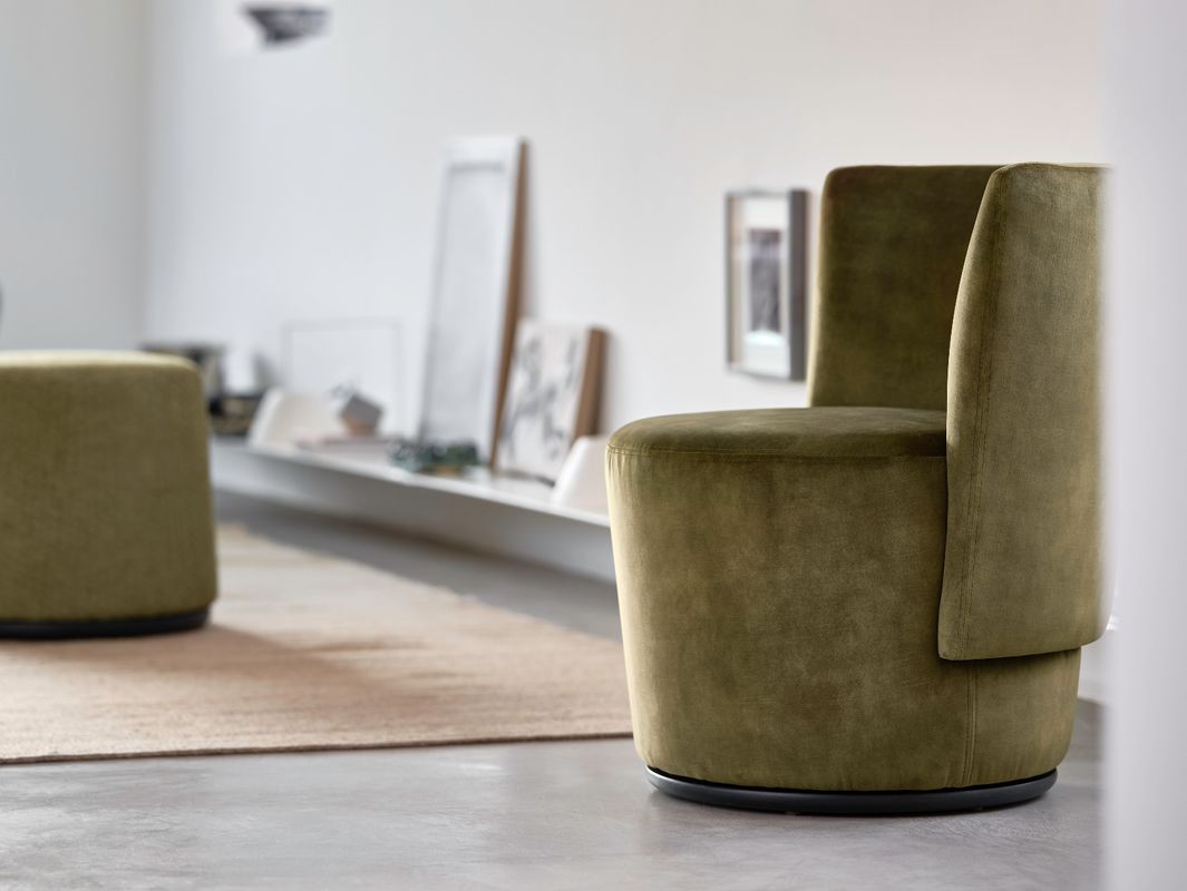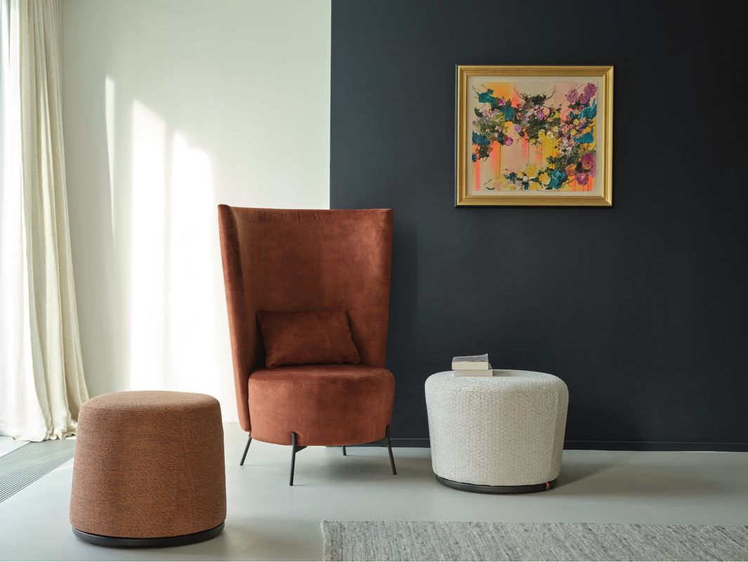 Bolero: een reeks zitmeubelen met dynamische lijnen om uw ruimte te accentueren. Kies voor de poefs of de kleine zetels met standaard of hoge rugleuning. Hoe dan ook met optimaal zitcomfort.