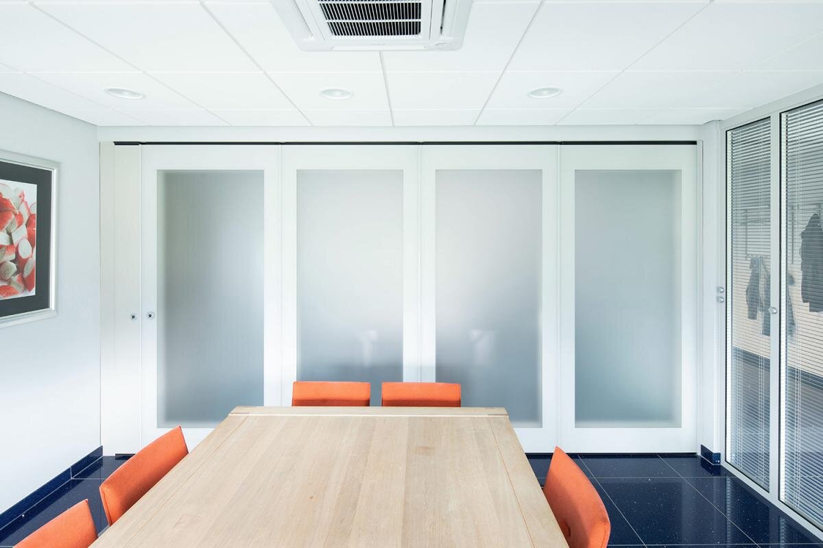 De BREEDVELD G90 is een geluidsisolerende dubbelwandige glaswand met panelen bestaande uit een aluminium frame waarin afdichtingsmechanieken subtiel zijn verborgen. Het drukkader rond de glasplaten zorgt voor een fraaie afwerking. Deze mobiele glaswand verzekert optimale vergaderkwaliteit en multifunctionaliteit, met geluidsisolatie tot +/- 44 dB Rw (vergaderkwaliteit).