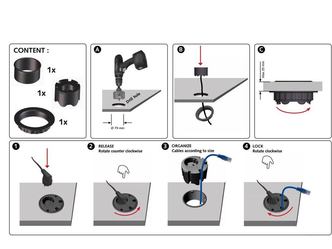 Bureau inbouwunit Power Dot biedt een eenvoudige, praktische oplossing voor het uitbreiden van de WCD’s of multi-media aansluitingen rondom de werkplek of vergaderruimte. Door het ronde design met een diameter van 79 mm is de unit bijna overal toepasbaar.