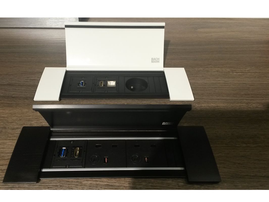 Power Frame van de firma Bachmann, voorheen bekend als inbouwunit Samos, combineert stijl, kwaliteit en tijdloosheid voor een betaalbare prijs. De hoge kwaliteit en het robuuste uiterlijk zijn een toevoeging aan een werkplek. De unit is gemakkelijk in te bouwen in een bureau- of werkblad met een minimale dikte van 10 mm.