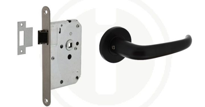 Deze deurbeslag set voor binnendeuren bestaat uit een loopslot met een bijpassende deurkruk. Het loopslot heeft een doornmaat van 50 mm en wordt geleverd inclusief sluitplaat en een rvs afgeronde voorplaat. Voor het slot kunt u dezelfde inbouw- en freesmaten gebruiken als een standaard woningslot. De dagschoot van dit slot is omwisselbaar; dat wil zeggen dat deze voor zowel naar linksdraaiende als rechtsdraaiende deuren geschikt is. Deurkruk Sabel op een ronde rozet bestaat uit aluminium met een zwarte coating. De rozet is voorzien van nokken, waardoor de kruk beter op zijn plek wordt gehouden. Daarnaast is de rozet voorzien van een veer, die ervoor zorgt dat de kruk na gebruik weer terugveert naar zijn originele horizontale positie. Deze deurkruk is geschikt voor een deurdikte van 38 - 54 mm en wordt per paar geleverd inclusief bevestigingsmateriaal.