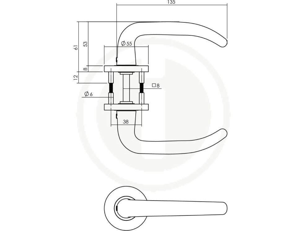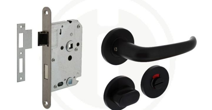 Deze deurbeslag set voor toilet-/badkamerdeuren bestaat uit een wc-slot met een bijpassende deurkruk en wc-sluiting. Het slot wordt geleverd in toilet-/badkamer uitvoering op 63 mm en met een 8 mm stift. De doornmaat van dit slot is 50 mm en wordt geleverd inclusief sluitplaat en roestvast stalen voorplaat. U kunt dezelfde inbouw- en freesmaten gebruiken als een standaard woningslot. De dagschoot van dit slot is omwisselbaar; dat wil zeggen dat deze voor zowel naar linksdraaiende als rechtsdraaiende deuren geschikt is. Deurkruk Sabel op een ronde rozet bestaat uit aluminium met een zwarte coating. De rozet is voorzien van nokken, waardoor de kruk beter op zijn plek wordt gehouden. Daarnaast is de rozet voorzien van een veer, die ervoor zorgt dat de kruk na gebruik weer terugveert naar zijn originele horizontale positie. Deze deurkruk is geschikt voor een deurdikte van 38 - 54 mm en wordt per paar geleverd inclusief bijpassende wc-sluiting