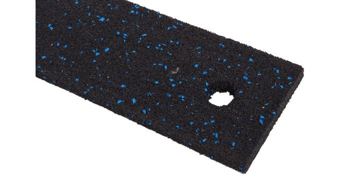 Duofor B.V., Producteigenschappen, ....., CS10 69 kPa (0,069 N/mm²), 1.000, Statische belasting (N/mm²):....., 80, B, 0,14, 550, oplegstrook voor wering contactgeluid t.b.v. DF16 zwaluwstaartplaat, gerecycled rubbergranulaat met polyurethaan, 20, Dynamische belasting (N/mm²): ....., Kleur: zwart met blauwe granulaat korrels, .....