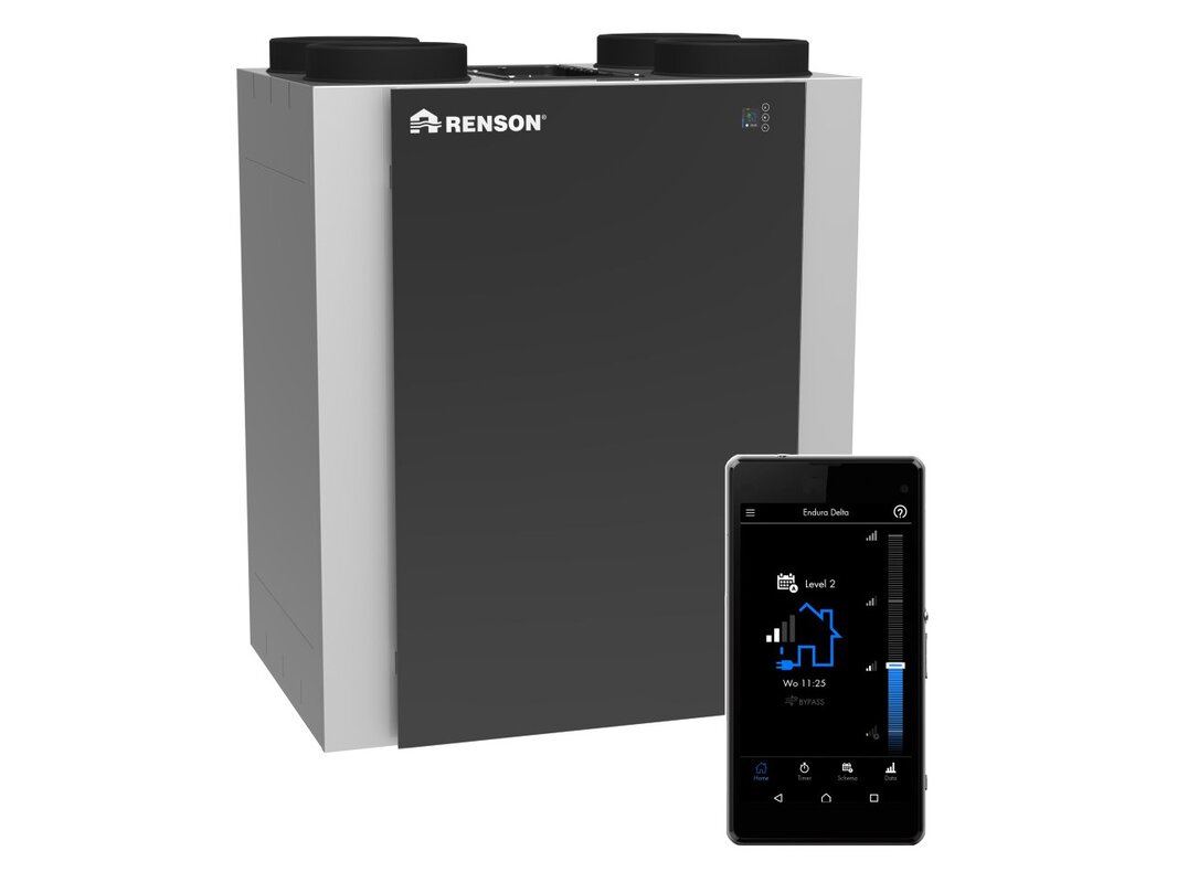 De Endura Delta van Renson behoort tot de groep warmteterugwinning systemen. Dankzij de unieke oplossing met drie interne sensoren reageert het systeem steeds op vocht, CO2 en geuren (VOC). Dit zorgt voor een uiterst energiezuinig systeem, dat standaard de beste luchtkwaliteit in een een woning kan garanderen. Zowel de klant als de installateur kunnen gebruik maken van de gratis Endura Delta app om het systeem in te regelen, te monitoren en bedienen. De app is te vinden op de App store van Windows, Android en iOS.