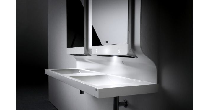 Geheel in overeenstemming met het basisidee voorziet dit modulaire concept in diverse verbeterde functionaliteiten. Zo behoort een grote stevige papier dispenser achter de spiegel of een organisch gevormde overgang van de wastafel tot de mogelijkheden. Daarbij vullen diverse uitbreidingsopties deze FX module mooi aan, zoals een optisch uniforme afwerking van de gehele installatiewand. Om je sanitaire ruimte onderscheidend te maken, zijn er diverse kleuren en texturen verkrijgbaar. Ook geschikt voor sanitaire ruimtes met hoge bezoeker aantallen of piekbezoek uren. Laat je verrassen.