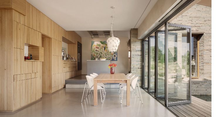 Met Solarlux glazen vouwwanden worden binnen en buiten met elkaar verbonden. De vouwwanden zijn over de volle breedte te openen. Door de smalle profielen bereik je ook maximale transparantie in gesloten toestand.