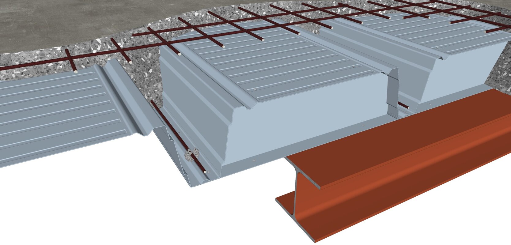 De HODY staalplaatbetonvloer is een ideale vloeroplossing voor nieuwbouw, verbouw, renovatie en herbestemmingen. De vloer bestaat uit een staalplaat die in trapeziumvorm is gewalst. Deze fungeert als verloren bekisting en onderwapening van de relatief dunne en lichte betonvloer. Door de profilering van de platen is er een optimale samenwerking met het beton en ontstaat een slanke en lichte vloerconstructie.