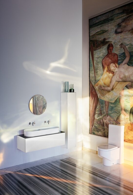 Aan de ene kant Kartell: Italiaans, creatief, kleurrijk en iconisch. Dit familiebedrijf drukte in zijn ruim 60-jarig bestaan zijn stempel op de designgeschiedenis en bracht in meubilair een radicale verandering teweeg met het gebruik van kunststof materialen. Aan de andere kant Laufen: Zwitsers, strak en betrouwbaar. Met meer dan 125 jaar toewijding aan cultuur in de badkamer en innovatie in de productie van keramisch sanitair. Doordat beide ondernemingen veel belang hechten aan continu onderzoek, duurde de gezamenlijke ontwikkeling van dit geweldige innovatieproject ruim drie jaar. De link tussen deze twee spelers zijn de met awards onderscheiden ontwerpers Ludovica+Roberto Palomba, zelf toonaangevend op het gebied van badkamerdesign.
