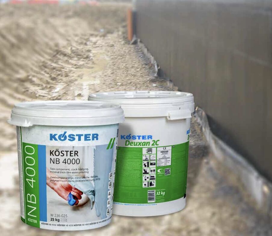 Afdichten met bitumineuze afdichtingen is één van de standaardoplossingen voor aan de buitenzijde afdichten van kelders. De systemen worden pasteus toegepast en dichten daarom naadloos af. Ze zijn gemakkelijk en veilig te verwerken en dichten scheuroverbruggend af. . Leidingdoorvoeren worden afgedicht met een bitumenpasta of Köster Doorvoerdichtkit.. Om spanningen in de afdichting te vermijden wordt er in de kim een holle plint aangebracht met Köster Reparatiemortel. De werkelijke oppervlakte dichting wordt uitgevoerd met Köster Deuxan 2K in twee lagen met spaan of machinaal verspuiten. Köster Deuxan Professional wordt echter alleen toegepast met speciale spuitapparatuur. Bijzonder licht te verwerken is Köster Nb 4000 een Synthetisch gemodificeerde minerale afdichtingspasta voor binnen- en buitenafdichting. Snel regenbestendig, binnen 24 uur waterdruk-belastbaar, taai-elastisch, scheuroverbruggend. Bitumenvrij. Een product voor deze tijd.