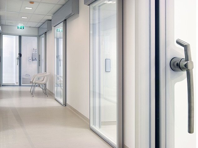 Lichtinval, openheid en transparantie hebben een positieve invloed op de geestelijke gesteldheid van mensen: goed voor patiënten én medewerkers. Medicare Glass is een volglazen, volledig transparante schuifdeur voor medische en cleanroom toepassingen.