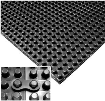 De randen van de PD 250 elementen kunnen onderling aan elkaar worden gekoppeld. U doet dit met behulp van de speciale verbindingselementen die op de paddenstoel-vormige noppen langs de randen van beide matten worden aangebracht. Per strekkende meter wordt het gebruik van 1 verbindingselement aangeraden.