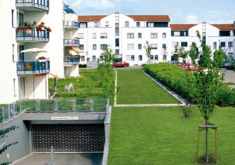 Combinatie van rijverharding en begroening op parkeergarages, met 1 drainage-element!