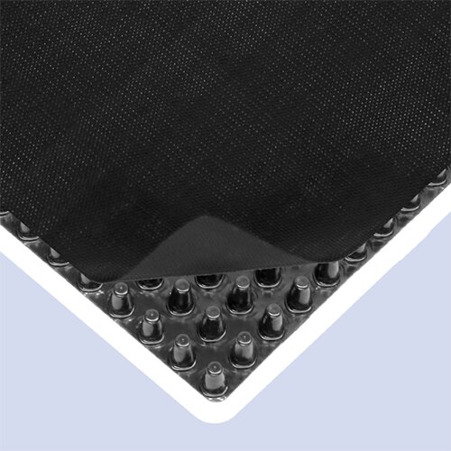 De filter-, bescherm (-en glij)lagen worden verlijmd en niet thermisch gehecht op de kern van de noppenfolie, om schade aan de mechanische en hydraulische eigenschappen van de geotextielen en het gehele drainagesysteem te voorkomen. Bovendien voorkomt dit dat de geotextielen tussen de noppen gedrukt worden, wat een goede drainage zou belemmeren. De overlap van het filtergeotextiel zorgt voor een optimale filtratie.