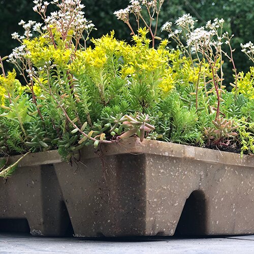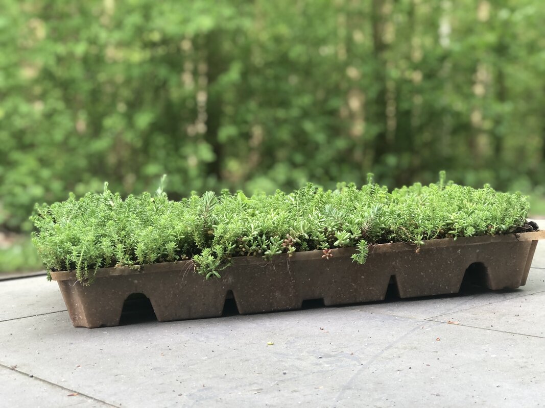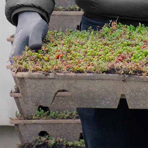4. Sedum / vegetatielaag: De sedumcassettes worden tenminste 85 % begroeid afgeleverd. Voor de vegetatielaag wordt gewerkt met 4 à 8 verschillende soorten sedum die ingestekt worden en voorzien