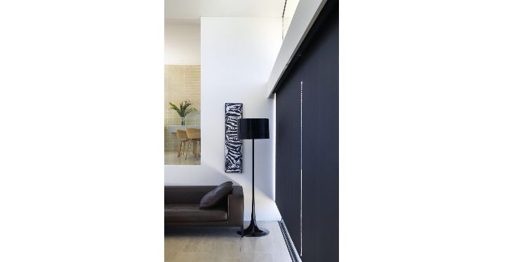 Rolgordijn voor grote ramen: Naast een compleet exclusief design, onderscheidt dit systeem zich door verschillende innovatieve kenmerken: nagenoeg geruisloos, hoog gebruikerscomfort en een zeer kleine lichtkier. De QS83 is een gekoppeld rolgordijnsysteem met één bediening. U kunt maximaal drie rolgordijnen koppelen zelfs onder een hoek van 90 graden.