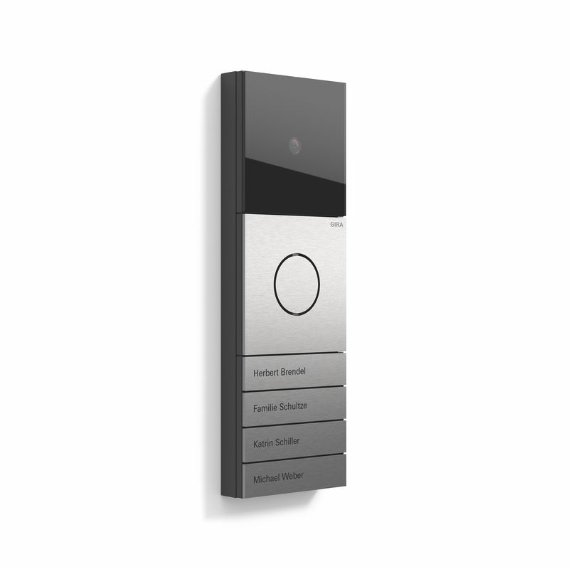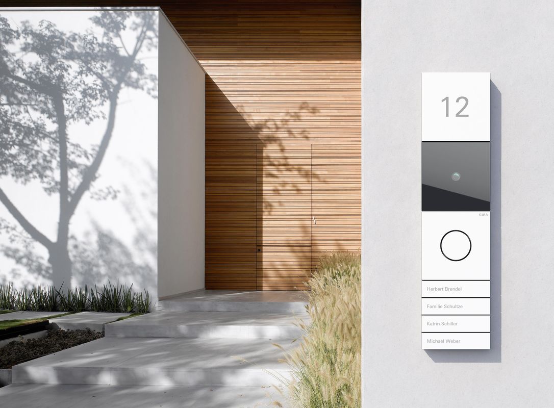 Alles klopt aan Gira Systeem 106, het deurstationsysteem van metaal met een puristisch design. Systeem 106 is verkrijgbaar in edelstaal, aluminium en wit gelakt. Tot de functies behoren de camera- en displaymodule, deurstation- en spraakmodule en verschillende belknopmodules. Samen vormen zij een harmonieus totaalbeeld dat individueel naar wens kan worden samengesteld. De modules met camera zijn voorzien van een zwarte, glazen afdekking van veiligheidsglas. Achter de verwisselbare zwarte glasplaat verbergt zich een hoogwaardige camera met hoge lichtgevoeligheid. Dankzij een detectiehoek van 85° hebben de bewoners altijd zicht op wat zich bij hun voordeur afspeelt. Innovatieve technologieën zorgen ongeacht de lichtomstandigheden voor een helder beeld; zelfs rechtstreeks invallend zonlicht of felle koplampen in het donker van de nacht veroorzaken geen storende effecten. Dankzij de zwart-witmodus van beschermde infraroodcamera kun je ook in het donker goed zien wie er voor de deur staat.