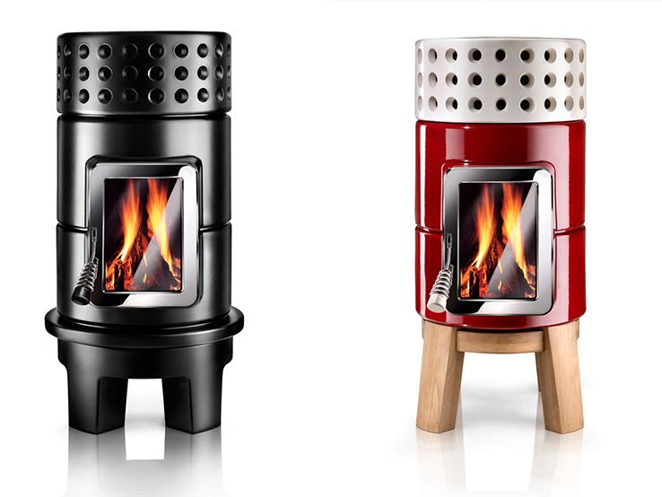 De kachels zijn ontworpen door de Italiaanse haardenfabrikant La Castellamonte en ontwerpbureau Adriano Design.