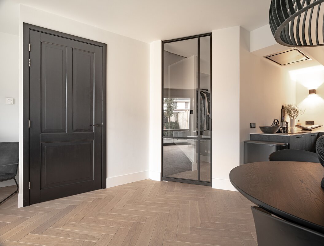 Een taatsdeur is een deur die om zijn verticale as draait. Dit komt doordat de scharnierpunten van een taatsdeur zich in de boven- en onderkant bevinden. Deze scharnierpunten worden in het plafond en de vloer gemonteerd. Om die reden kan een taatsdeur naar binnen en naar buiten scharnieren. Dit geeft een unieke, eigentijdse uitstraling in het huis. Een taatsdeur kan zowel als enkele of dubbele deur worden toegepast. Hierdoor heeft u genoeg keuze om uw deur bij uw eigen interieur te laten passen. Wilt u er nog een echte BLECKS® stalen pui naast? Of misschien zijlichten? Geen probleem! Doordat wij alle deuren zelf maken kunnen wij uw nieuwe taatsdeur helemaal op maat maken. Bekijk ook eens de configurator, hier kunt u zelf al bekijken hoe uw nieuwe taatsdeur eruit gaat zien.