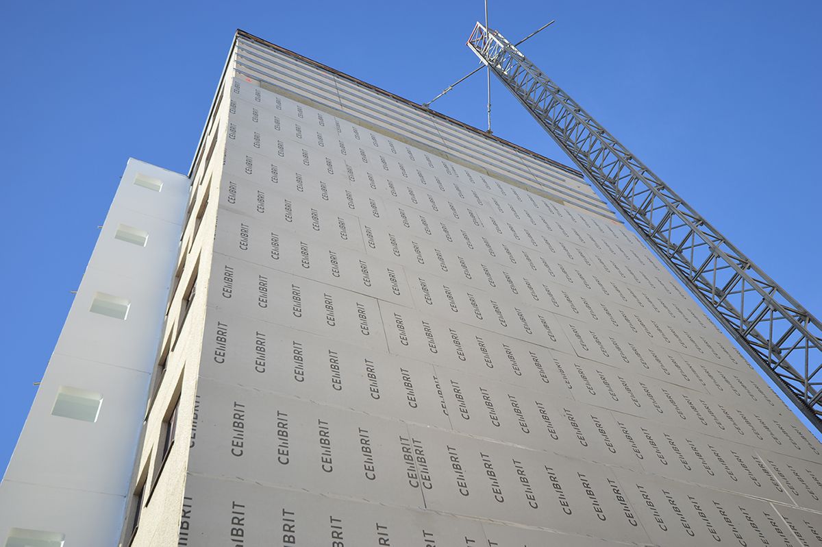 Swisspearl Windstopper Basic kan een half jaar lang dienst doen als tijdelijke bescherming tegen weer en wind, in afwachting van de definitieve gevelbekleding. Binnen kan ondertussen de afbouw probleemloos worden uitgevoerd. Met Swisspearl Windstopper behoren wapperende, uitpuilende en losrakende folies tot het verleden; ook biedt Swisspearl Windstopper meer bevestigingsmogelijkheden.