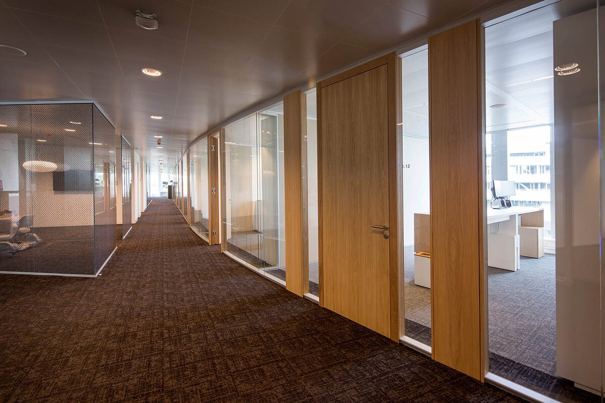 Glaswanden geven maximale transparantie waar dat nodig is. Traditionele cassette-wanden met vlakverdelingen in ieder gewenst patroon of volglaswanden met minimale profilering. Door het toepassen van glas met akoestische eigenschappen is hoge geluids-wering mogelijk. Glaswanden creëren ruimten met een frissen look.