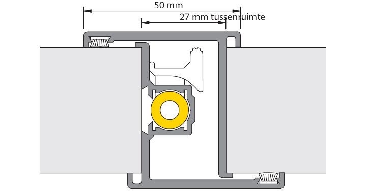 achterliggend aangebrachte schuifgrendel, sluitpot boven en onder, vlakke flens, borstelstrippen, met voorzieningen voor hoofdslot, Onderdelen, Alprokon Aluminium Development B.V., ....., Producteigenschappen, aluminium, Din RS, deurnaald voor inbraakvertragende dubbele deuren, benodigde ruimte tussen de deuren 27mm, 1.050, 40, 150, vanaf onder- en bovenzijde deur, F1, geanodiseerd mat-satijn, Din LS, gemoffeld(RAL), met sparing voor dag- en/of nachtschoot, ....., 600, vanaf onder- en bovenzijde deur