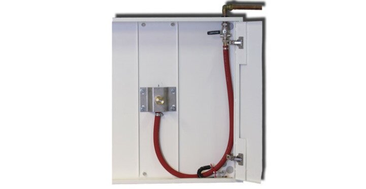 Speciaal voor vaste montage van 1/2" en 3/4" Uro-haspels in haspelkasten waarbij geen standpijp gebruikt kan worden.