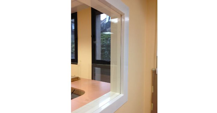 Stralingsveilig raamkozijn van aluminium met loodglas is leverbaar met loodequivalentie vanaf 2 mm. Een eenvoudig kliksysteem maakt montage eenvoudig.