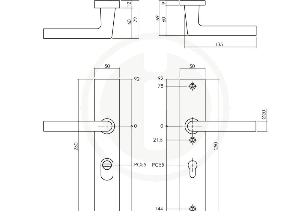 Deze rechthoekige set voordeurbeslag bestaat uit aluminium en is hierdoor licht van gewicht en sterk tegelijk. Het veiligheidsbeslag is voorzien van een zwarte coating. Het product is SKG*** gekeurd, wat betekent dat het om zwaar inbraakwerend beslag gaat. Daarnaast is het voorzien van kerntrekbeveiliging, waardoor de cilinder wordt bescherm tegen het uittrekken en uitboren van de cilinderkern. Deze set is voorzien van zowel een kruk aan de buitenzijde als een kruk aan de binnenzijde en is zowel links als rechts toepasbaar. Het veiligheidsbeslag is geveerd en heeft een profielcilindergat maat van 55 mm