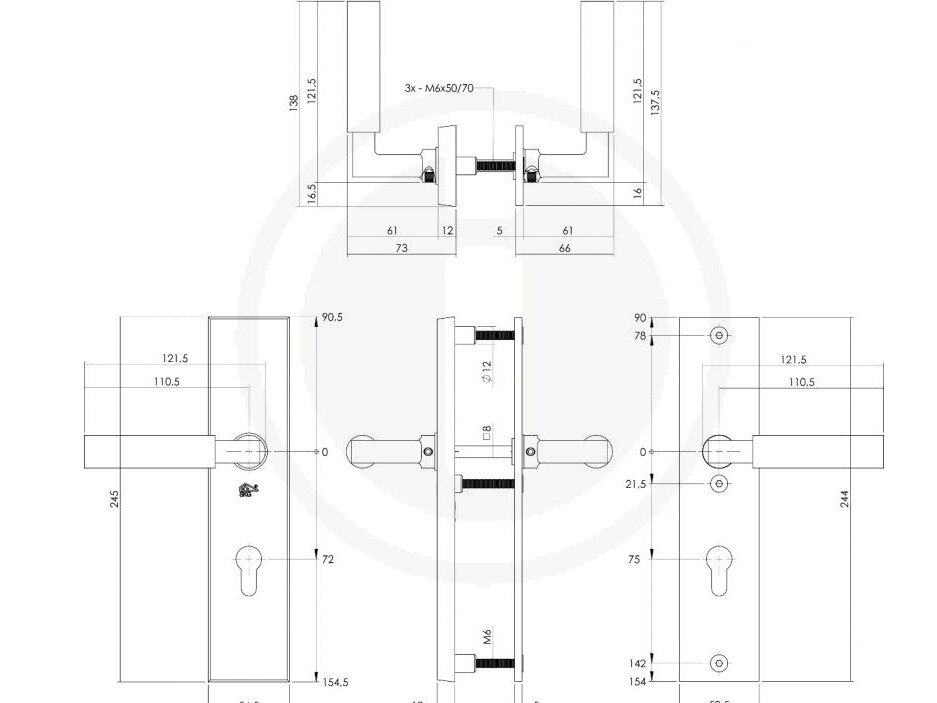 Deze rechthoekige set achterdeurbeslag is uitgevoerd met extra bescherming tegen inbraak en is SKG*** gekeurd. Deze set heeft een profielcilindergat maat van 72 mm en heeft een aan beide zijden een passende deurkruk. Het veiligheidsbeslag is uitgevoerd in messing en naderhand getrommeld waardoor het een matte uitstraling heeft.