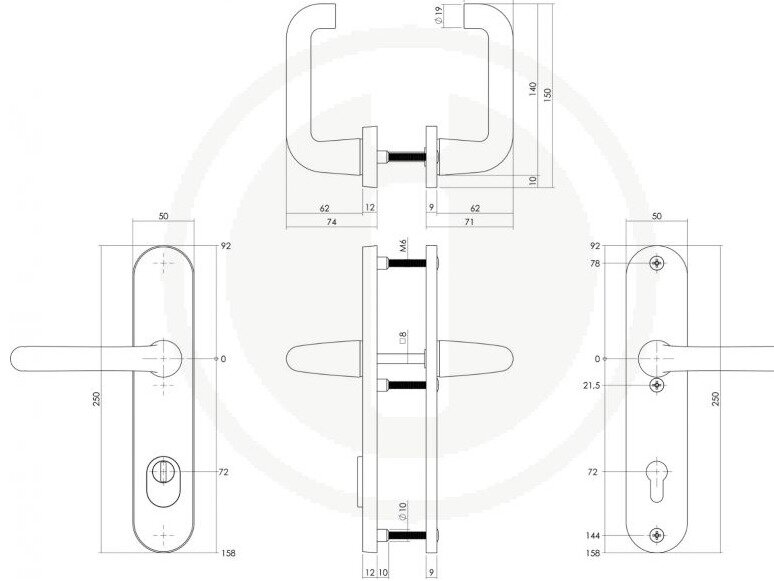 Deze ovale set achterdeurbeslag bestaat uit aluminium en is hierdoor licht van gewicht en sterk tegelijk. Het veiligheidsbeslag is van een zwarte coating voorzien. Het product is SKG*** gekeurd, wat betekent dat het om zwaar inbraakwerend beslag gaat. Daarnaast is het voorzien van kerntrekbeveiliging, waardoor de cilinder wordt bescherm tegen het uittrekken en uitboren van de cilinderkern. Deze set is voorzien van zowel een kruk aan de buitenzijde als een kruk aan de binnenzijde en is zowel links als rechts toepasbaar. Het veiligheidsbeslag is geveerd en heeft een profielcilindergat maat van 72 mm.
