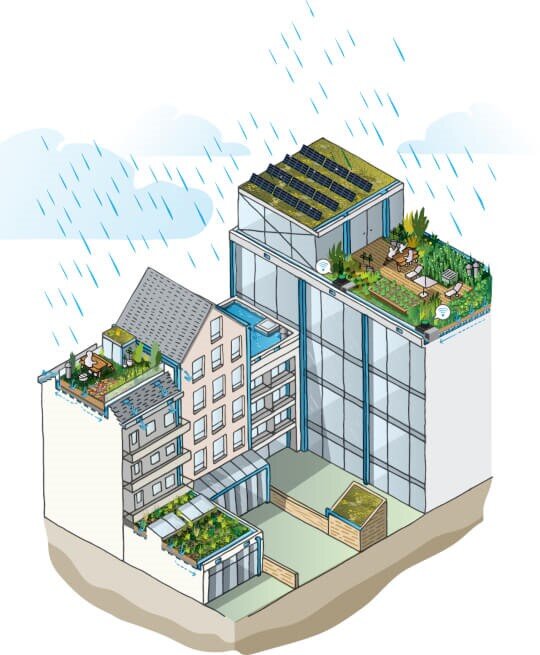 Een piek in regenwater kan voor problemen zorgen in de stedelijke gebieden. Om de klimaatadaptieve kracht van een stad te vergroten is de opvang, behandeling en het hergebruik van regenwater van groot belang.