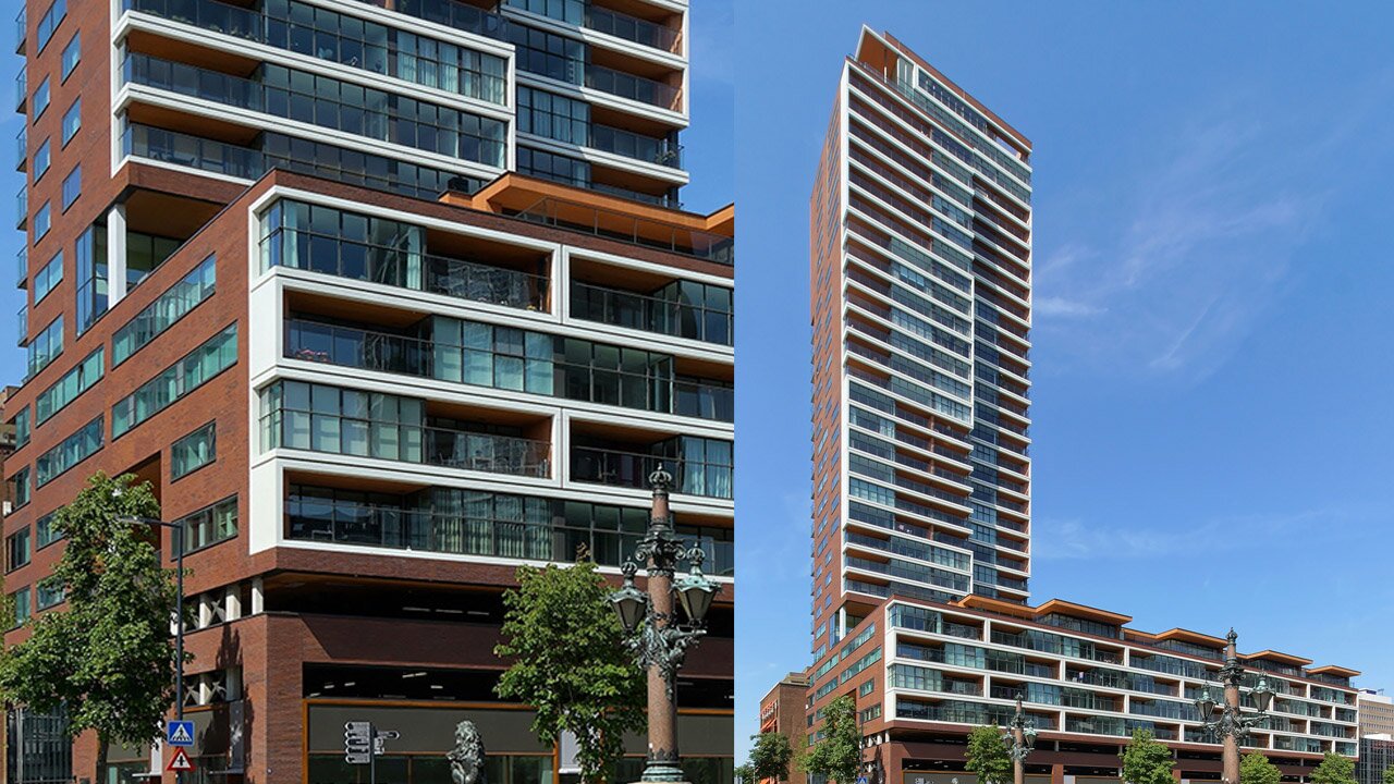 100Hoog, is gesitueerd aan de Wijnhaven en omvat een woontoren met 112 woningen met daarnaast, evenwijdig aan de haven, een langgerekt gebouw met veertig appartementen. Deze appartementen zijn ondergebracht in vijf woonlagen boven twee parkeerverdiepingen De plint op het maaiveld herbergt commerciële ruimten. Alle appartementen beschikken over een buitenruimte in de vorm van een balkon of loggia. De gevels aan de zuidzijde bestaan voor een groot deel uit glas. In de overige gevels domineert het metselwerk bestaande uit langformaat bakstenen van steenfabriek Hagemeister met de afmeting 290x90x40 mm.