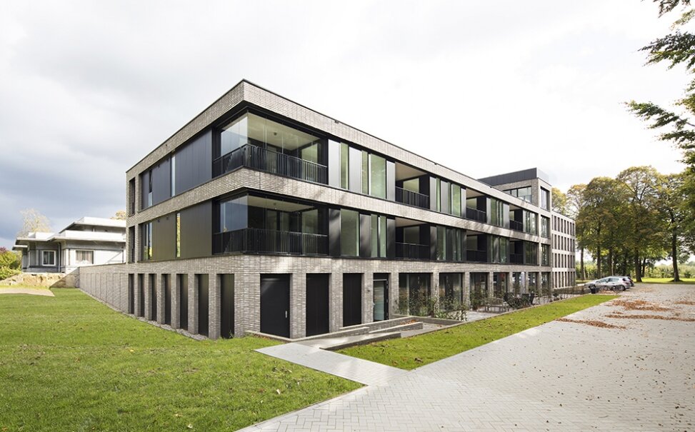 Bij Rijksmonument De Lange Akker (1920) in Berkel-Enschot zijn 57 wooneenheden voor senioren gerealiseerd in twee appartementenvleugels.