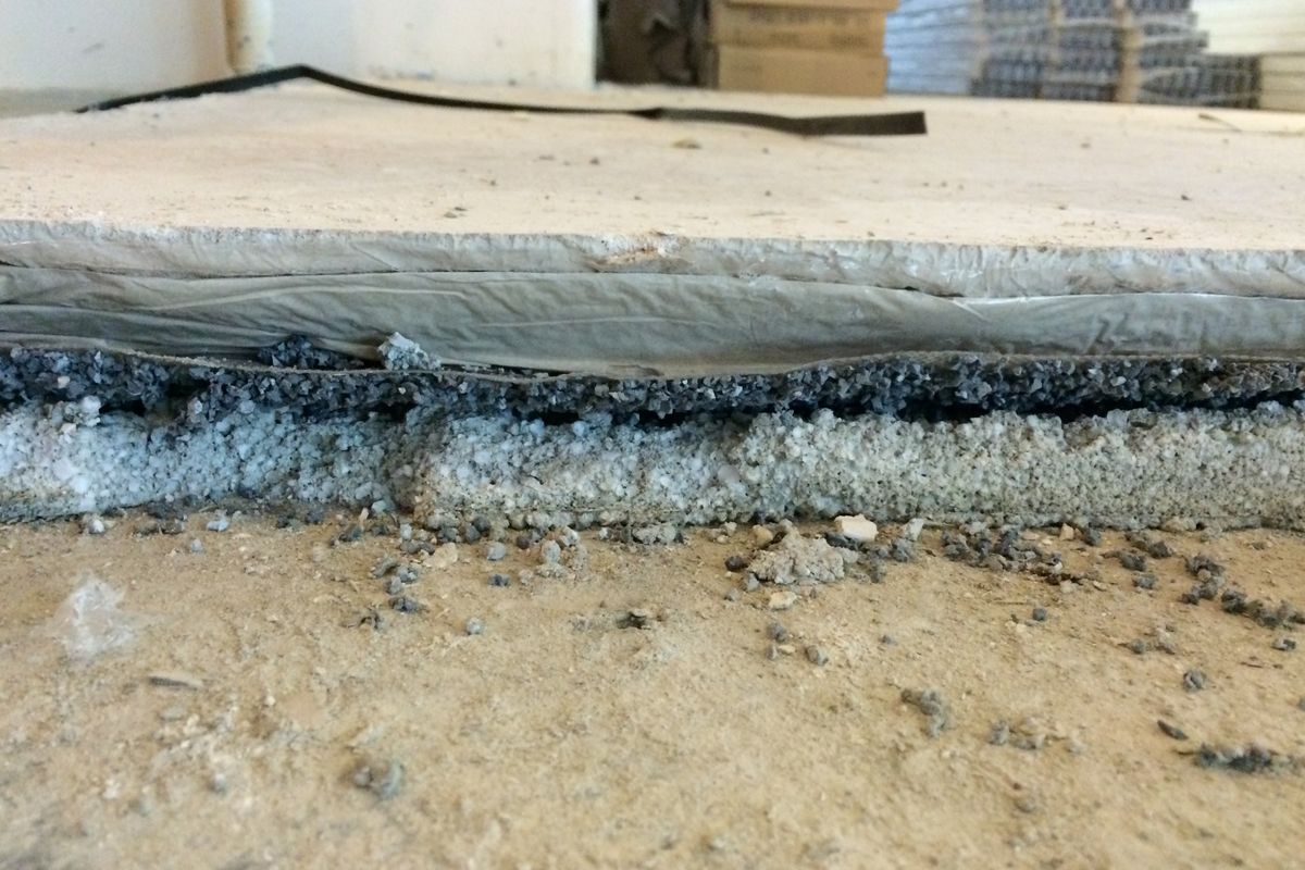 Vanwege de geringe opbouwhoogte werd gekozen voor GREI isolatiematten van Isolgomma. Deze isolatiemat van gerecycled materiaal biedt voldoende isolatie van contactgeluid. Dit bleek de beste combinatie met een Gyvlon anhydrietvloer die door Anhydrytec in dit project was voorgesteld. Vloerenbedrijf Nicky Huisman B.V heeft uiteindelijk de vloer als volgt uitgevoerd; 20 mm EPS mortel, 5 mm Isolgomma GREI en 25 mm Gyvlon anhydriet dekvloer.