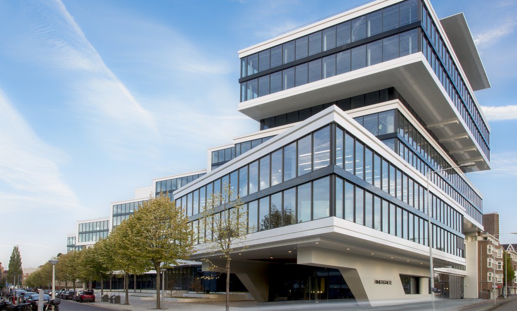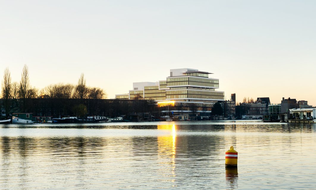 Amsteldok is gelegen in de Rivierenbuurt, in het zuiden van Amsterdam. Het is een buurt die wordt bepaald door de Amstel, de rivier die zo'n grote rol heeft gespeeld in de geschiedenis van de stad en er zelfs zijn naam aan heeft gegeven: 'de dam aan de Amstel'. Door de eeuwen heen hebben kunstenaars en architecten vanaf Rembrandt inspiratie gevonden in de rivier. Wij volgden dit voorbeeld en stelden ons ten doel het gebouw aan het Amsteldok te verbinden met de Amstel en haar omgeving – ook al stond het daar eerder van los.