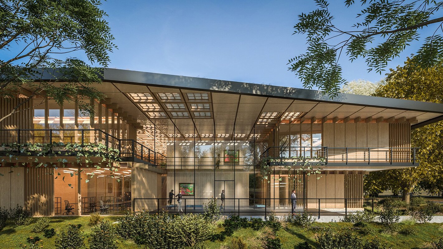 The building is primarily constructed of CLT to embed the volume in the surrounding landscape and reduce its carbon footprint. The green roof, which is accessible to the public, has a meticulously designed grid that varies between open, partly open and closed. This creates the perfect balance of direct sunlight, filtered sunlight and artificial light accommodating to the the specific program of the space beneath.