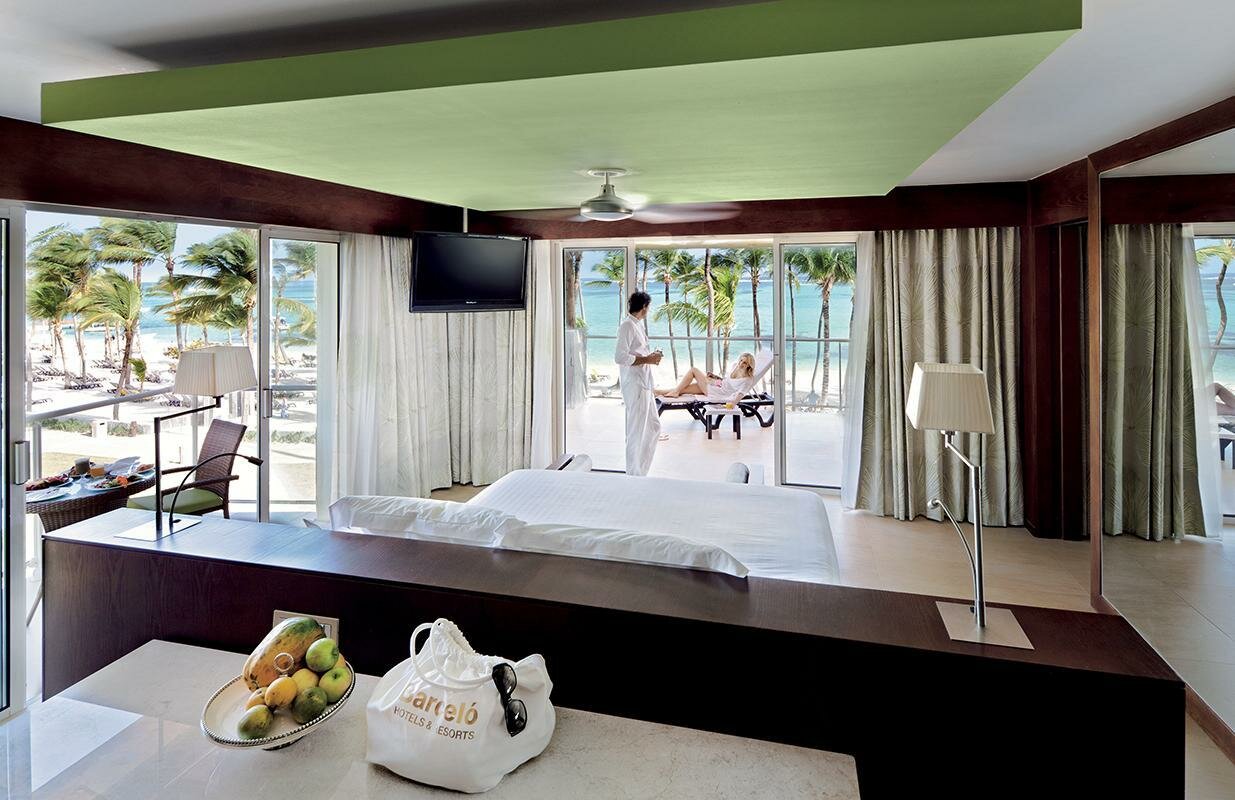 Punta Cana’s 5-Star Barceló Bávaro Palace Deluxe hotel, part of the Barceló Hotel group, is one of the largest hotels in the Dominican Republic with over 1,600 guest rooms made up of B-rooms, Junior, Family, Master, Panoramic, and Presidential suites. Located on the seafront of one of the 10 best beaches in the world, the Barceló Bávaro Palace Deluxe hotel boasts an enviable variety of amenities including four swimming pools, spa, gym, golf course, water sports, theater, nightclub, and casino. Diners are spoiled by their options with an impressive 11 specialty restaurants to choose from including a Japanese restaurant and a sports bar.