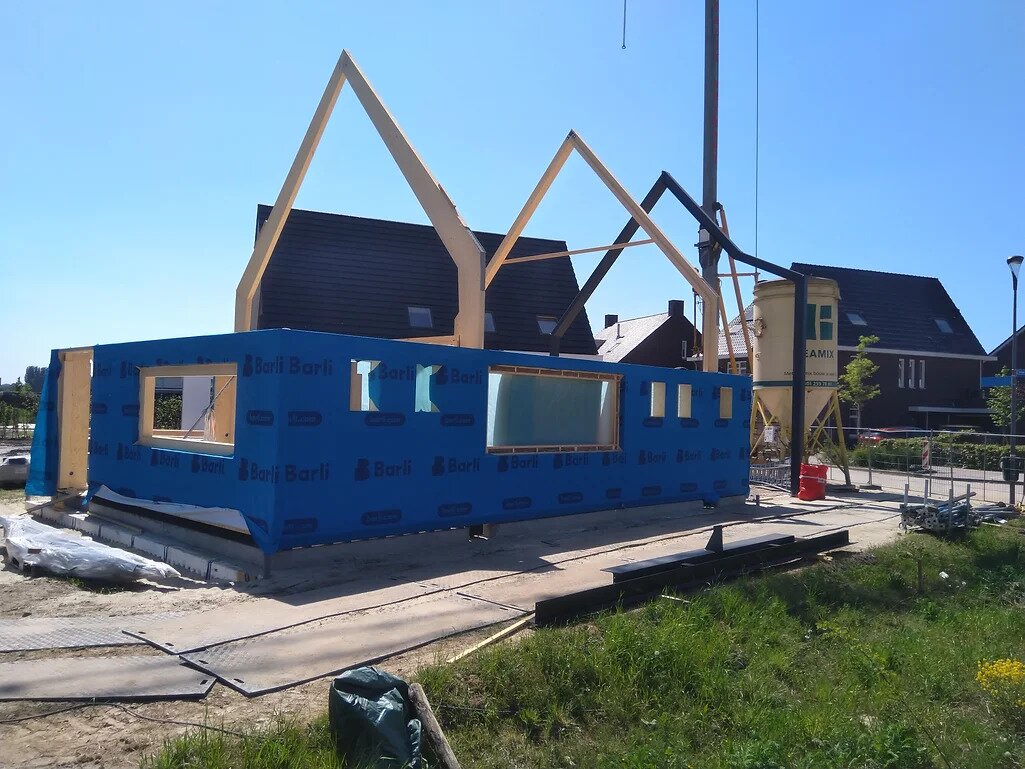 Onder een stralende hemel is de bouw van ons ontwerp voor weer een biobased-woonhuis gestart.