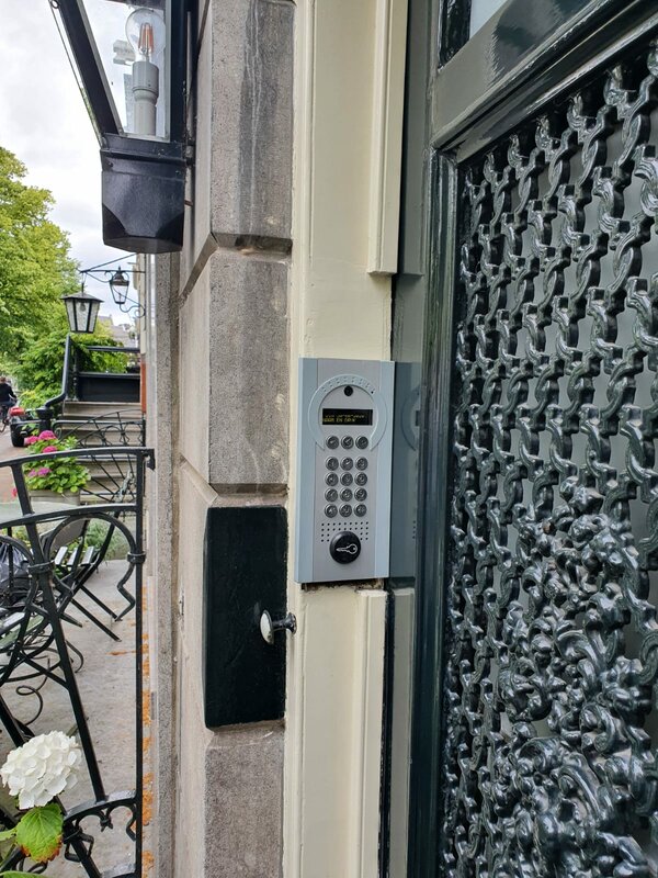 De gekozen oplossing is de RENO Intercom. Met het toetsenbord van deze Intercom kan je via de beheer website codes toevoegen om mensen (tijdelijk) toegang te geven aan het appartement. Zodra de bezoekers weer weg zijn is het eenvoudig om deze weer van de beheerwebsite te verwijderen.