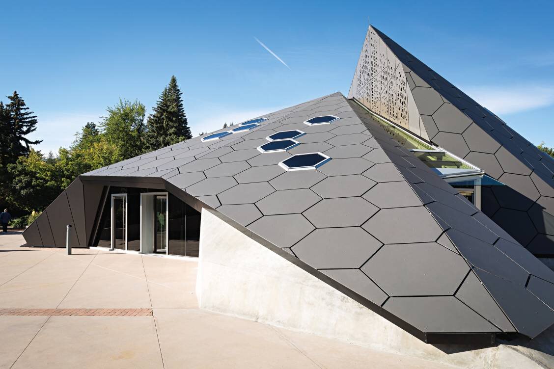 De wedstrijdopdracht was een transparante piramide te ontwerpen. De architecten van de winnende inzending, BURKETTDESIGN, hebben zich laten inspireren door de geologische processen waardoor de grillige rotsformaties van de nabijgelegen bergkammen zijn ontstaan. De gebouwschil werd eveneens geïnspireerd door een biologische metafoor en bevat bijna 500 donkergrijze, zeshoekige Swisspearl panelen, gerangschikt in een honingraatpatroon en afgewisseld met dertig zonnepanelen en meerdere ramen en dakramen.