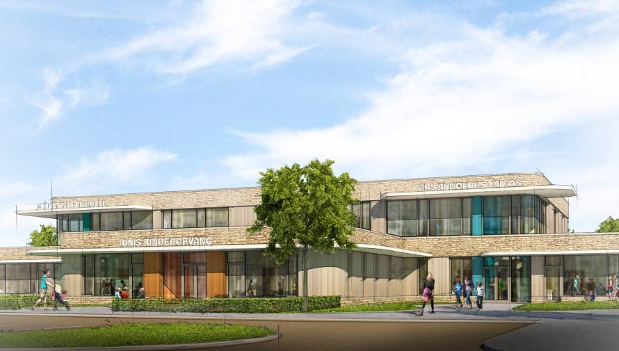 Zichtbaarheid van de afzonderlijke gebruikers en (multi)functionaliteit vormen de basis van het ontwerp. Zo zijn er in het ontwerp drie vleugels te onderscheiden met elk een duidelijk gezicht aan de geplande ontsluitingsweg. Het multifunctionele hart, met onder andere speellokaal en keuken, vormt de verbindende schakel. In opdracht van Vink Bouw gaat Block Liquid Solutions de basisscholen en het kinderdagverblijf luchtdicht maken. De omvang van het project bedraagt ca. 2.400m2.
