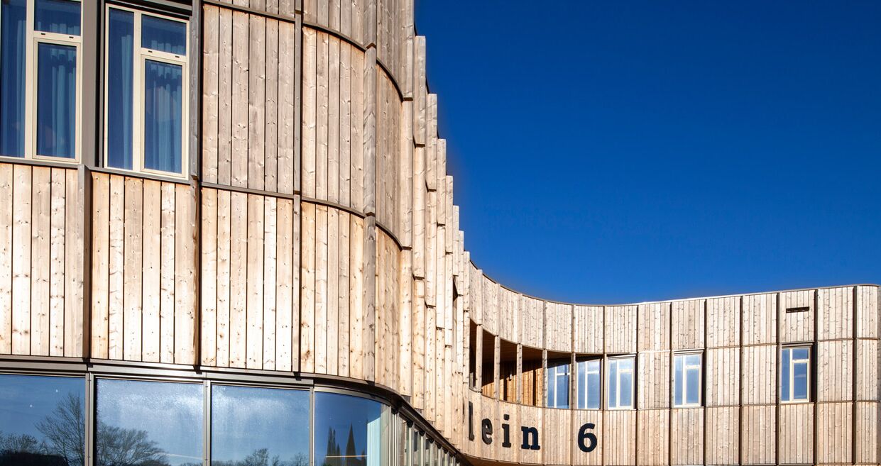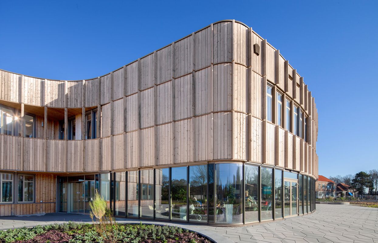 Multifunctioneel gebouw ‘Plein 6’ vormt het nieuwe hart van het woonzorgpark van ’s Heeren Loo in Noordwijk. In het gebouw zijn de verschillende afdelingen en onderdelen die verspreid lagen over het terrein samengebracht. Het gebouw is rondom bekleed met onbehandeld