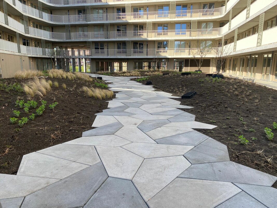 Onlangs werd de laatste hand gelegd aan het project ‘De Drie Hoefijzers’ in Breda. Dit hoefijzervormige appartementengebouw biedt niet alleen een prachtig uitzicht op de omgeving, maar heeft ook een bijzondere groene binnentuin genaamd de Grand Court.