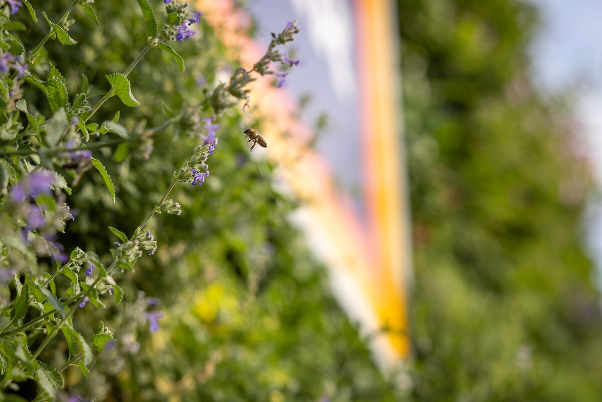 De wens van Hofer was, naast de ecologische bijdrage, om een dekkende groene gevel met subtiele bloemkleuren te creëren die past bij de huisstijl en het logo, welke een prominente plaats in het midden van de gevel heeft. “Het is voor ons ook belangrijk om een grote selectie robuuste, winterharde vaste planten en kruiden te hebben die van de lente tot de herfst verrassen met steeds weer nieuwe en aantrekkelijke bloeiwijzen”. Ralf Dopheide heeft n.a.v. deze vraag een beplantingsplan gemaakt met de focus op groenblijvers en bloeiers in de kleuren geel, rood en oranje.