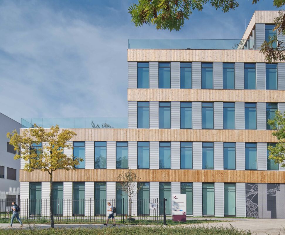 Eindhoven is een prachtig onderwijsgebouw rijker! Voor Fontys Hogescholen, campus Rachelsmolen, ontwierp Ector Hoogstad Architecten een duurzaam gebouw met een sterk eigen karakter. Platowood Vuren is middels prefab frames op de gevels gemonteerd.