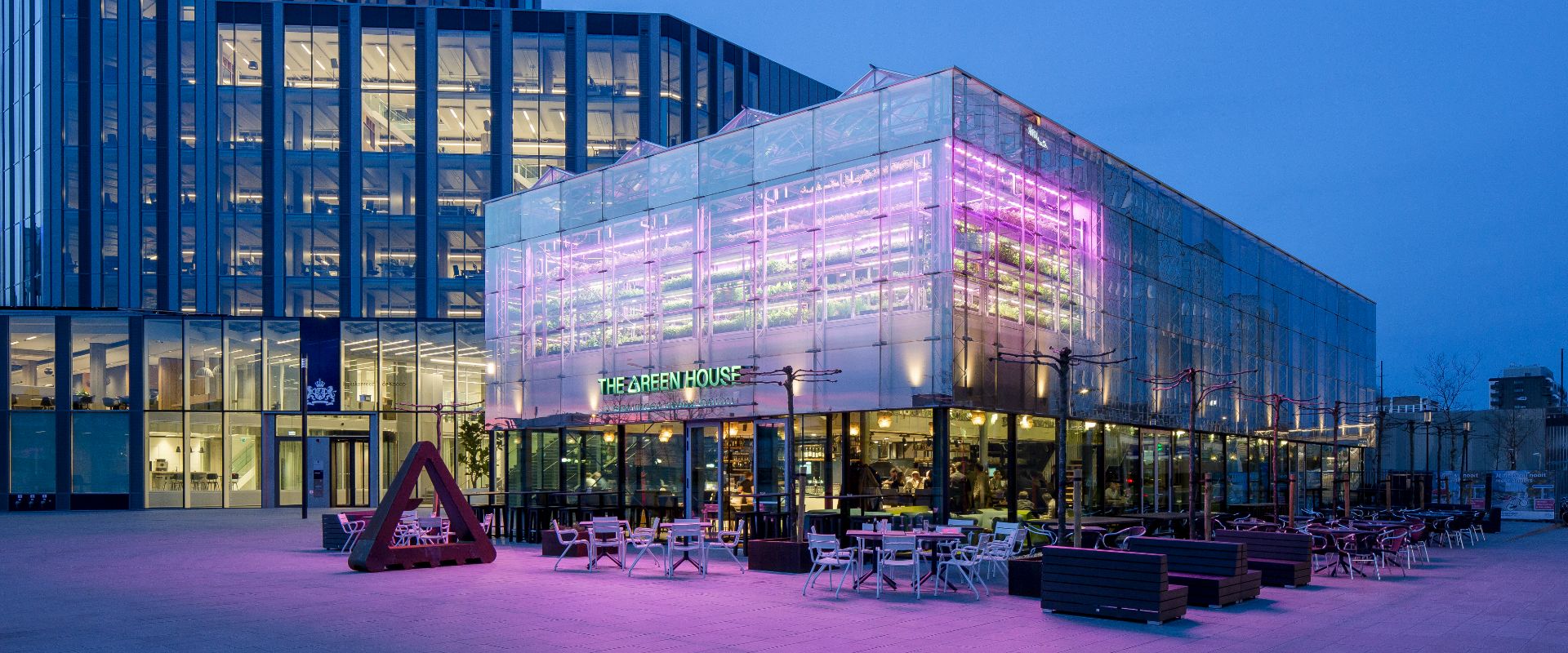Een sterk onderscheidend circulair horecapaviljoen door zijn sluitende circulaire businesscase voor 15 jaar + 1 dag. The Green House biedt ruimte aan een restaurant met een eigen urban farm, en een vergadercentrum. The Green House versnelt de transitie van een traditionele vastgoedontwikkeling naar een innovatieve circulaire duurzame vastgoedontwikkeling. Een ontwikkeling die zijn investering terugverdient en daarnaast ook nog grensverleggend is op het gebied van duurzaamheid.