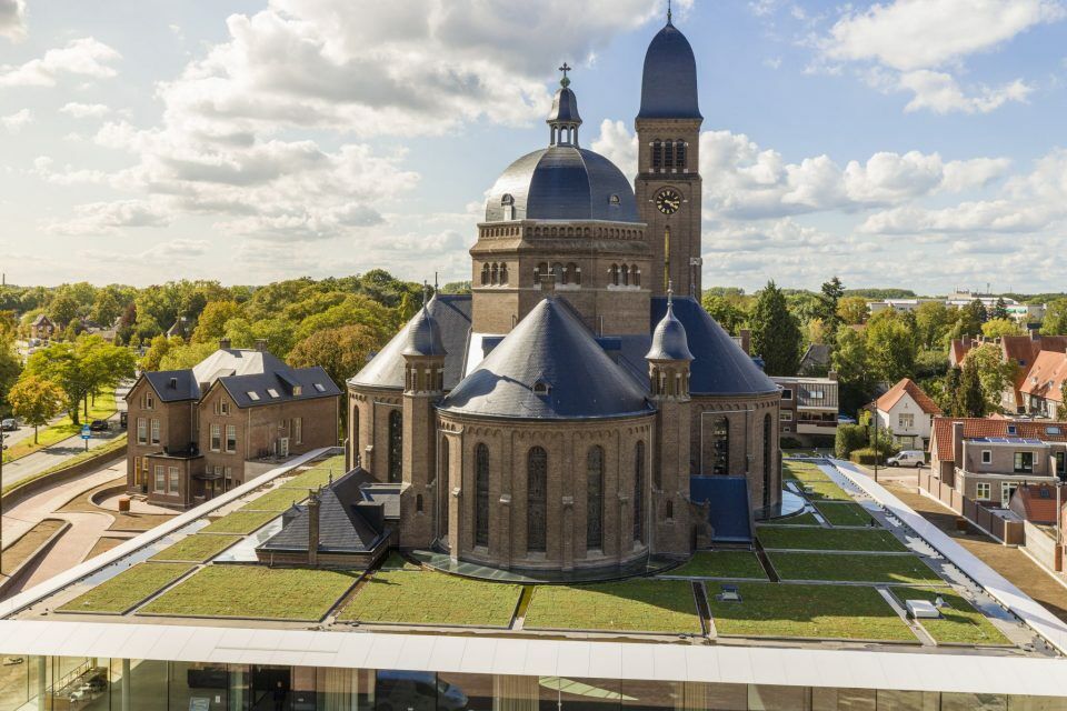Het Speelhuisin Helmond is het mogelijk. Een nieuw glazen paviljoen is aan de kerk gebouwd, waarbij een groendak is gerealiseerd. Dit vraagt, nu en in de toekomst, om onderhoud. Zo bedacht en installeerde Eurosafe Solutions de valbeveiliging.